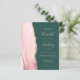 Die links Kulisse dieser modernen Hochzeitseinladung besticht durch eine rosa Wasserfarbe, die durch einen vergoldeten Imitat-Glitzer bestickt wird. Der individuell anpassbare Text verbindet blassgoldene Handschrift, Copperplate und kursiv Schriftart auf einem smaragdgrünen Hintergrund. Fügen Sie zusätzliche Details auf der Rückseite, zusammen mit einem QR-Code, um Ihren Gästen zu helfen, besuchen Sie Ihre Hochzeitswebsite.