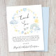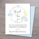 Die preisgünstige Babydusche aus Boho mit "Dankeschön" in einem stilvollen Drehbuch und blau-gelben Wasserfarben eines Regenbogens, Sonne, Herzen, Sterne, Monde und Wolken.