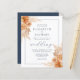 Die Ecken dieser romantischen Hochzeitseinladung sind mit wasserfarbenen, blumengeschmückten Blumenbouquets in sanften Erdtönen aus gebranntem Orange, Terrakotta, Beige und Elfenbein gestaltet. Der anpassbare Text kombiniert marineblaue Serif-, Kursivschrift- und Script-Schriftart, die durch ein marineblaues Rechteck auf weißem Hintergrund gerahmt sind. Die Rückseite ist eine koordinierende Vollmarineblau.