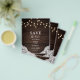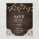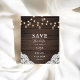 Budget Boho schicke Hochzeit speichern Sie das Datum Flyer mit Maurerkrübel und Streichelleuchten auf Holz.