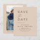 Budget Hochzeit Boho Terracotta Speichern Sie die Date Cards, die ein Foto auf der Vorderseite haben. Die Save the Date-Karten enthalten eine moderne, handgeschriebene, kursive Schriftzeichen-Typografie, die elegant, einfach und modern nach einem einfachen Hochzeitstag-Fest zu verwenden sind.