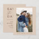 Budget Hochzeit Boho Terracotta Speichern Sie die Date Cards, die ein Foto auf der Vorderseite haben. Die Save the Date-Karten enthalten eine moderne, handgeschriebene, kursive Schriftzeichen-Typografie, die elegant, einfach und modern nach einem einfachen Hochzeitstag-Fest zu verwenden sind.