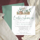 Boho Shelf Toys Sage Gender Neutral Baby Dusche einladen. Ein Preis SMALLER 4,5" x 5,6" Alternative. Erhältlich in einem SEMI GLOSS 110lb CARD STOCK, der die Standardoption ist (empfohlen für Einladungen, ähnlich der Dicke einer Postkarte), ODER einem SATIN FINISH 80 lb THINNER PAPER STOCK (besser für dünne Gehäuse). Boho Stil Illustration des Regals mit Pflanze und Babyspielzeug und stylische informelle Set-Skript für Header Baby Shower in Salbei grün und eine koordinierende Weise Hintergrund auf der anderen Seite. Sie können die Erholung des Textes ganz einfach an Ihre eigenen Anforderungen anpassen und die Hintergrundfarben ändern, wenn Sie es wünschen.