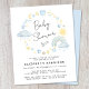 Die preisgünstige Babydusche mit pastellblauen und gelben Wasserfarben eines Regenbogens, Sonne, Herz, Sterne, Monde und Wolken.