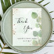 Ein Brautparty danke Ihnen Karte. Ein grüner, wasserfarbener Hintergrund mit Eukalyptusgrün und Imitaten goldenen Glitzer Staub. Vor dem großen schwarz gefärbten handgeschriebenen Skript und den Text: Danke, Ihr Text, Titel und ein Datum. Zurück: Personalisieren Sie Ihre Dankeschön Notiz und Name.