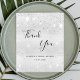 Ein Brautparty danke Ihnen Karte. Ein Imitat silber metallisch aussehende Hintergrundfarbe. Mit Imitaten Glitzer Staub. Auf der Vorderseite, ein großes handgeschriebenes Skript und den Text: Danke, Ihr Text, Titel und ein Datum. Zurück: Personalisieren und hinzufügen Sie Ihren Dank und Ihren Namen.