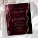 Diese elegante Hochzeitseinladung zeigt ein Hintergrundbild des bordeauxroten Aquarells, bestickt mit goldenen Imitaten Glitzer. Der anpassbare Text verbindet schicke, goldfarbene Schrift mit Copperplate und kursiven Schriftart. Auf der Rückseite des Hotels befindet sich ein passendes Bordeaux- und Goldagate-Design.
