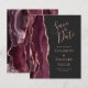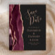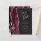 Die links Seite dieser modernen Hochzeit speichern Sie die Dattelkarte mit einer bordeauxfarbenen Aquarellgrenze mit Imitate Rose Gold Glitzer. Der anpassbare Text kombiniert Rose-Rosa-Handschrift, Copperplate und kursiv Schriftart auf einem schwarzen Hintergrund. Auf der Rückseite ist ein passendes Bordeaux- und Rose-Gold-Agate-Design.