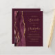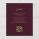 Die links Seite dieses eleganten, modernen Hochzeitseinladens besticht durch eine bordeauxrote Aquarellgrenze, die mit vergoldetem Imitat bestickt ist. Der benutzerdefinierbare Text kombiniert goldfarbenes Skript und singt serifenlose Schriftart auf bordeauxfarbenem Hintergrund. Die Rückseite bietet Platz für Hochzeitsdetails auf einem soliden bordeauxroten Hintergrund, zusammen mit einem QR-Code, den die Gäste scannen können, um Ihre Website und UAWG zu besuchen, was die Kosten für den Druck und Versand separater RSVP-Karten rette.