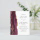 Die links Seite dieses eleganten, modernen Hochzeitseinladens besticht durch eine bordeauxrote Aquarellgrenze, die mit vergoldetem Imitat bestickt ist. Der benutzerdefinierbare Text kombiniert das kohlegraue Skript und setzt serifenlose Schriftart auf weißem Hintergrund. Die Rückseite bietet Platz für Hochzeitsdetails auf einem soliden, weißen Hintergrund, zusammen mit einem QR-Code können Gäste scannen, um Ihre Website und UAWG zu besuchen, was die Kosten für den Druck und Versand separater RSVP-Karten rette.