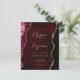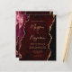 Diese elegante Hochzeitseinladung zeigt ein Hintergrundbild des bordeauxroten Aquarells, bestickt mit goldenen Imitaten Glitzer. Der anpassbare Text kombiniert goldfarbene moderne Handschrift, Copperplate und kursiven Schriftart. Auf der Rückseite des Hotels befindet sich ein passendes Bordeaux- und Goldagate-Design.