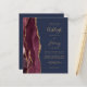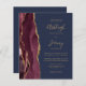 Rett die Kosten für das Drucken und Verschicken separater RSVP-Karten mit dieser eleganten, modernen All-in-One-Hochzeitseinladung. Der links Rand ist mit einem bordeauxroten Aquarellstreifen versehen, der mit vergoldetem Imitat-Glitzer bestickt ist. Der anpassbare Text kombiniert goldfarbene Handschrift, Copperplate und kursiv Schriftart auf marinebasischem Hintergrund. Die Rückseite bietet Platz für Hochzeitsdetails auf einem massiven marineblauen Hintergrund, zusammen mit einem QR-Code können Gäste scannen, um Ihre Website und UAWG.