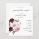 ** SATIN PAPIER IST PAPIERTHIN. AKTUALISIEREN SIE DAS PAPIER FÜR EIN BILDERPAPIER. HAT EINE OPTION FÜR ENVELOPES. *** Rette Geld für Einladungen mit dieser kleineren Einladung, die eine Option für Umschläge hat. Holen Sie sich mit Ihren Einladungen zur Burgunder Rot & Rosa Blumenstuhlabteilung Ihr Party. Eine größere Version gewollt? Karo unsere Kartensammlung aus. https://www.zazzle.com/collections/burgundy_blush_pink_6_invitation_suite-119287944050339757