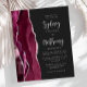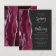 Der links Rand dieser eleganten, modernen Hochzeitseinladung besticht durch einen bordeauxroten, mit silberfarbenem Imitat-Glitzer bestickten Aquarellrand. Der anpassbare Text kombiniert silbergraues Kalligrafieschrift und sans Serif-Schriftart auf schwarzem Hintergrund. Auf der Rückseite ist ein passendes bordeauxfarbenes und silberfarbenes Design zu sehen.