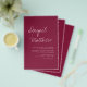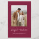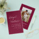 Das Boho Simple Elegant Burgundy und Blush Stilvolle Einladung mit Ihrer Botschaft und Details mit einem eleganten Foto auf der Rückseite personalisieren. Diese minimalistische Einladung beinhaltet stilvolle handgeschriebene Schriftzeichen mit moderner Farbe für die besondere Hochzeitstagsfeier.