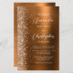 Die links Kulisse dieser modernen Hochzeitseinladung besticht durch einen Glitzer mit verbrannten orangen Imitaten. Der anpassbare Text kombiniert weiße Handschrift, Kupferplatte und kursiv Schriftart auf einem verbrannten orangen Imitat mit gebürstetem Metallhintergrund. Die Rückseite bietet Platz für Hochzeitsdetails auf einem verbrannten, orangefarbenen Metallhintergrund, zusammen mit einem QR-Code, den die Gäste scannen können, um Ihre Website und UAWG zu besuchen, was die Kosten für das Drucken und Verschicken separater RSVP-Karten rette.