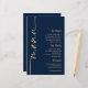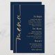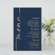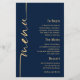 Budget Calligraphie Marine Blue Gold Mariage Menu Size 5.5" x 8.5" à un prix abordable, Ce design moderne a Menu dans un élégant script fixe qui tourne sur le côté gauche et le reste du texte est aligné à droite que vous pouvez facilement personnaliser ainsi que vos noms et votre date de mariage au dos. Les couleurs texte et arrière - plan de chaque côté peuvent être changées à n'importe quel de votre choix via l'option customiser plus loin.