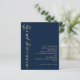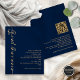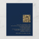 Budget Kalligraphie QR Code Navy Blue und Gold Hochzeit Abend Party Gäste. Eine preisgünstige Alternative von 4,5 x 5,6" auf 110gsm Glanz ähnlich dick wie eine Postkarte. Fügen Sie Ihren QR-Code zu Ihrer Hochzeitswebsite auf der Rückseite macht dies zu einer bequemen Option für Ihre Gäste, um alle Details zu sehen, ohne dass separate UAWG- und Detailkarten erforderlich sind. Stilvolle Set-Schrift wird auf der links Seite gedreht, mit allen Details stilvoll nach rechts mit viel Weiß für ein zeitgenössisches Ambiente. Einfach mit Ihren Daten personalisieren. Und ändern Sie die Farbe von Text und Hintergrund, wenn Sie möchten über die editieren weitere Option.