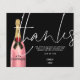 Eine Alternative zum Haushaltspreispapier. Umschläge sind optional. Ein stilvolles, modernes Design in klassischem Schwarz mit einem großen handgeschriebenen Set-Script in Weiß und einer rosa Champagnerflasche in links, die Typografie überlappt leicht. Personalisieren Sie die Erholung der Details einfach. Auf der anderen Seite ersetzen Sie das Musterbild durch eines Ihrer Lieblings-Fotos aus Ihrer Dusche als ein Muss für Ihre Gäste.