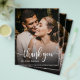Budget Elegant Hand Lettered Wedding Foto Danke personalisiert günstige Low Budget THIN Karte. Stilvolle moderne Hochzeitsvorlage danke Ihnen postcard Vorlage mit einem vollen vertikalen Foto auf der Vorderseite mit Texteüberlagerung "Danke" in einem handgeschriebenen Typografie-Script-Schriftart in Weiß auf dem Bild. ***BEACHTE! *** HAUSHALTSPAPIER/FLYER IST DÜNN. *** AKTUALISIEREN SIE DAS PAPIER FÜR EIN THICKER-PAPIER. *** Postcard: https://www.zazzle.com/elegant_hand_lettering_wedding_photo_thank_you_postcard-256315488263404361 Traditioneller Kardinal mit Umschlägen: https://www.zazzle.com/modern_hand_written_script_wedding_photo_thank_you_card-256486770669732945 Personalisieren Sie Ihre Dankeschön-Nachricht und Ihren Namen. Wenn Sie lieber Ihre Notiz handschreiben, löschen Sie einfach den Beispieltext, um mehr Platz zu machen. Schöne, einfache Budgetkarten. Wenn Sie Hilfe oder Matching Artikel benötigen, wenden Sie sich bitte an Designer!