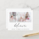 Croyez 2 Photos Script Carte de Noël. Un prix économique SMALLER 4.5" x 5.6" alternative pour vos salutations festives dans un STOCK CARTE SEMI-GLOSS 110 lb. Les enveloppes sont légèrement plus grandes que la taille de la carte. Remplacez simplement les deux exemples de photos par les vôtres et personnalisez avec votre salutation et vos noms en bas. Believe est dans un stylo stylé de style manuscrit.