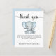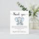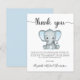 Günstige niedliche Baby-Boy-Dusche Dankeschön-Karte mit "danke" in einem stilvollen Drehbuch mit Wimpern und einer Aquarellfarbe von Baby-Boy-Elefant. Unterhalb personalisieren Sie Ihre Danksagung oder verlass leer für eine handschriftliche Notiz.