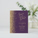 Die links Hand dieses eleganten, modernen Hochzeitsgeschehens bewahrt die Dattelkarte mit einem vergoldeten Glitzer-Rahmen für Imitate. Der individuell anpassbare Text verbindet blassgoldene Handschrift, Copperplate und kursiv Schriftart auf einem dunklen lila Hintergrund. Die Rückseite ist mit einem lila und goldfarbenen Design ausgestattet.