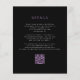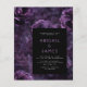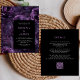 Diese elegante, launische Hochzeitseinladung besticht durch eine üppige, romantische Aquarellmalerei tiefer lila Rose. Passen Sie den lila und silbergrauen Text in stilvollen Schriftart auf einem schwarzen Rechteck an. Die Rückseite bietet Platz für Hochzeitsdetails auf einem soliden schwarzen Hintergrund, zusammen mit einem QR-Code können Gäste scannen, um Ihre Website und UAWG.