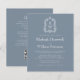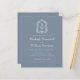 Dieses elegante, Vintag inspiriert Hochzeitsinspektionsdesign zeichnet sich durch ein Paar weißer Monogramm-Initialen aus, die in einem offenen Serif-Schriftart über und unter einer Trennlinie stehen und durch ein Line Art Acanthus-Wappen auf staubblauem Hintergrund umschlossen sind. Die Rückseite bietet Platz für Hochzeitsdetails auf einem soliden, staubblauen Hintergrund, zusammen mit einem QR-Code, den Gäste scannen können, um Ihre Website und Ihre UAWG.