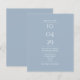 Ein modernes, minimalistisches Budget-Hochzeitseinladungs-Design mit Ihrem besonderen Datum und Ihren Hochzeitsdetails-Set in klassischer, schicke Typografie auf staubblauem Hintergrund. Entwickelt von Thisisnotme©