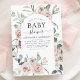 Das Budget Dusty Pink Floral Rose und Eukalyptus Botanische Vegetation Watercolor Frühjahr oder Summer Baby Shower Einladungen - beinhaltet eine schöne und elegante Schrift Typografie mit modernen botanischen Blume und Grün für die besondere Mutter zu sein für eine Baby oder Baby Girl Neuankündigung.