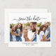 Budget Simple Elegant Calligrafy Script 3-Foto Collage Wedding speichern Sie die Date Cards in Schwarz und Weiß. Dieses exquisite, zarte Design ist genau auf zeitgenössische Hochzeiten zugeschnitten und strahlt einen zauberhaften romantischen Anklang aus. Diese Karten, die eine anmutige 3-Foto-Gitter-Collage und eine skurrile Kalligraphie in einem handgeschriebenen Schwanz-Schriftart hervorheben, symbolisieren die moderne Eleganz. Sie können sie problemlos mit Ihren wertvollen Hochzeitsdetails und -bildern anpassen und so eine erschwingliche und dennoch raffinierte Touch bieten, um Ihren besonderen Tag zu verkünden.