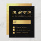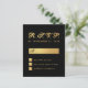 Ein elegantes UAWG für Hochzeitsfeiern in Schwarz und Gold. Der Hintergrund ist schwarz. Der Titel UAWG ist Imitate goldene Folie, die Erholung des Textes ist golden, außer dem Buchstaben M, der schwarz ist. Der Titel und der Buchstabe M sind in einem eleganten Kalligraphieskript, die Erholung in Kappen geschrieben. Die rechteckige Kiste für den Namen, die kleinen quadratischen Kisten und die Rückseite sind goldene Imitate.
