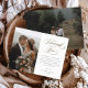 Dieses moderne Foto Hochzeit Dankeschön-Notiz verfügt über Gold Drehbuch danke, persönliche Nachricht und ein vertikales Foto auf der Vorderseite. Auf der Rückseite befindet sich ein zweites Foto, das ein volles, waagerechtes Foto ist. Klicken Sie auf Bearbeiten, um dieses Design anzupassen.