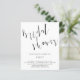 Elegante Script Bridal Dusche Einladung. Eine preisgünstige SMALLER 4.5" x 5.6" Alternative. Erhältlich in einem SEMI GLOSS 110lb CARD STOCK oder einem SATIN FINISH 80lb THINNER PAPIERSTOCK. Umschläge sind optional. Die Hauptüberschrift ist in einem stilvollen Set Kalligraphie und die Erholung des Textes können Sie leicht personalisieren. Sie können Text- und Hintergrundfarben auf beiden Seiten auch ändern, wenn Sie dies wünschen, indem Sie die Option Weitere anpassen wählen.