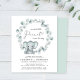 Haushaltsfreundliche, geschlechtsneutrale Paare, die sich mit der Einladung "A Sweet Little Peanut Is On The Way" in einer Mischung aus moderner Typografie und einem stilvollen Drehbuch mit Herzschlag und einer Aquarellfarbe eines niedlichen, pastellfarbenen, minzgrünen Babyelefanten in einem Kranz grüner Eukalyptuspflanzen zufrieden geben. Fügen Sie die Namen der künftigen Eltern und die Sprinklerdetails in einfacher Typografie hinzu.