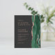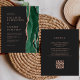 Die rechte Seite dieser eleganten, modernen Hochzeitseinladung ist mit einem smaragdgrünen Aquarellrahmen besetzt, der mit Imitaten Rose Gold Glitzer bestickt ist. Der anpassbare Text kombiniert staubige Rose-Rosa-Serifen, Copperplate und kursiv Schriftart auf einem schwarzen Hintergrund. Die Rückseite bietet Platz für Hochzeitsdetails auf einem soliden schwarzen Hintergrund, zusammen mit einem QR-Code können Gäste scannen, um Ihre Website und UAWG, die die Kosten für den Druck und Versand separater RSVP-Karten rette.