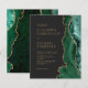 Die elegante, moderne Hochzeitseinladung zeichnet sich durch einen smaragdgrünen Aquarellrand aus, der mit goldenen Imitaten und Glitzer bestickt ist. Der anpassbare Text kombiniert goldfarbene Serifen, Copperplate und kursiv Schriftart auf einem schwarzen Tonschiefer. Die Rückseite ist mit einem smaragdgrünen und goldgelben Dekor ausgestattet.