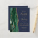 Der links Rand dieser eleganten, modernen Hochzeitseinladung zeichnet sich durch einen smaragdgrünen Aquarellstreifen aus, der mit vergoldetem Imitat-Glitzer bestickt ist. Der anpassbare Text kombiniert goldfarbene Handschrift, Copperplate und kursiv Schriftart auf marinebasischem Hintergrund. Die Rückseite bietet Platz für Hochzeitsdetails auf einem massiven marineblauen Hintergrund, zusammen mit einem QR-Code können Gäste scannen, um Ihre Website und UAWG zu besuchen, was die Kosten für den Druck und Versand separater RSVP-Karten rette.