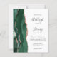 Der links Rand dieser eleganten, modernen Hochzeitseinladung besticht durch einen smaragdgrünen Aquarellrahmen, der mit Imitaten Rose Gold Glitzer bestickt ist. Der individuell anpassbare Text kombiniert handgeschriebene Holzkohle, Kupferplatte und kursiv Schriftart auf weißem Hintergrund. Auf der Rückseite ist ein smaragdgrünes und goldenes Rose-Design zu sehen.
