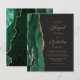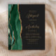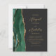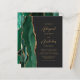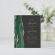 Der links Rand dieser eleganten, modernen Hochzeitseinladung zeichnet sich durch einen smaragdgrünen Aquarellstreifen aus, der mit vergoldetem Imitat-Glitzer bestickt ist. Der anpassbare Text kombiniert goldfarbenes Skript und singt serifenlose Schriftart auf schwarzem Hintergrund. Die Rückseite ist mit einem smaragdgrünen und goldgelben Dekor ausgestattet.