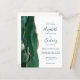 Der links Rand dieser eleganten, modernen Hochzeitseinladung zeichnet sich durch einen smaragdgrünen Aquarellstreifen aus, der mit vergoldetem Imitat-Glitzer bestickt ist. Der anpassbare Text verbindet skurrile Handschrift, Copperplate und kursiv in smaragdgrün auf weißem Hintergrund. Die Rückseite bietet Platz für Hochzeitsdetails auf einem soliden, weißen Hintergrund, zusammen mit einem QR-Code können Gäste scannen, um Ihre Website und UAWG.