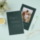 Budget Persönliche Gestaltung dieses Boho Simple Elegant Emerald Green und Sage Stilvolle Einladung mit Ihrer Botschaft und Details mit einem eleganten Foto auf der Rückseite. Diese minimalistische Einladung beinhaltet stilvolle handgeschriebene Schriftzeichen mit moderner Farbe für die besondere Hochzeitstagsfeier.
