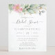 Belle invitation à la douche nuptiale avec eau rose fleurie eucalyptus et feuilles d'or.