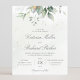 Beautiful wedding invitation featuring watercolor eucalyptus and gold leaves. Perfect choice for spring and summer weddings.