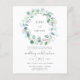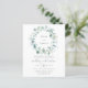 Schöne Eukalyptusgrüne Hochzeitseinladung mit einem hübschen Kranz aus frischen grünen Eukalyptus-Blätter. Dieses elegante und luftige Design ist ideal für Hochzeiten im Frühjahr und Sommer.