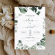 Eukalyptus Greenery Botanischer Wasserfarbenfrühling Einladungen auf weißem Hintergrund - beinhaltet schöne und elegante Schrift-Typografie mit modernen botanischen Blätter und Grün für die besondere Hochzeitstagsfeier.