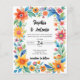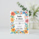 Set den Ton für ein lebhaftes Fest mit unserer farbenfrohen mexikanischen floralen Fiesta Wedding Einladung. Diese Einladung, die von der mexikanischen Kultur inspiriert ist, besticht durch kühnen Farbtönen und lebendige Blumenmuster und eignet sich ideal für Paare, die eine festliche Hochzeit im Festistastil planen. Passen Sie Ihre Wünsche an, um ein einzigartiges und fröhliches Hochzeitserlebnis zu schaffen.