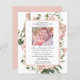 Budget Einladung Stil. Die elegante Feier einer Lebenseinladung mit einem rosa rosa Blumenrahmen. Ein Bild von Ihrem Liebsten ist in der Mitte. Ihr Name ist in einem traditionellen Skripttext geschrieben. Der gesamte Text kann leicht bearbeitet werden, um eine persönliche Erinnerung zu schaffen.