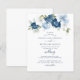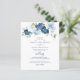 Fügen Sie einfach Ihre Hochzeitsdetails zu dieser niedlichen, eleganten Blumenvorlage hinzu, indem Sie auf den Button "Personalisieren" klicken. Moderne blauen und blauen Blumen mit grünem Blattwerk und moderner Typografie auf weißem Hintergrund. Ändern Sie den Hintergrund dieser Aufforderung, indem Sie auf die Schaltfläche "Anpassen" klicken
